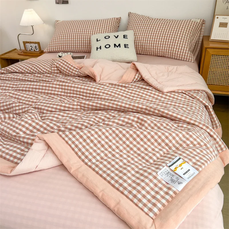 New summer cool blanket, checkered striped air conditioning blanket, summer thin blanket core, skin friendly cool thin blanket